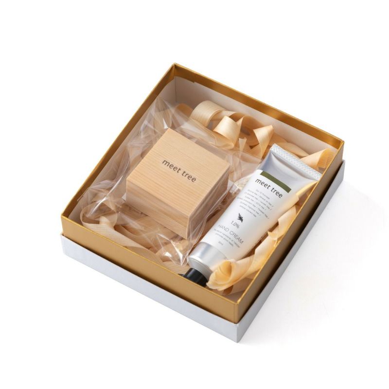 ヒノキのケースのリップバームと人気のmtハンドクリームのセットをご用意しました。