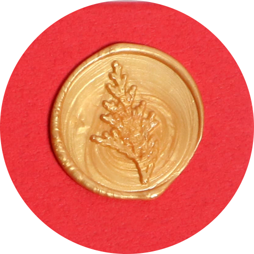ヒノキの葉のオリジナルシーリングスタンプ付きです。